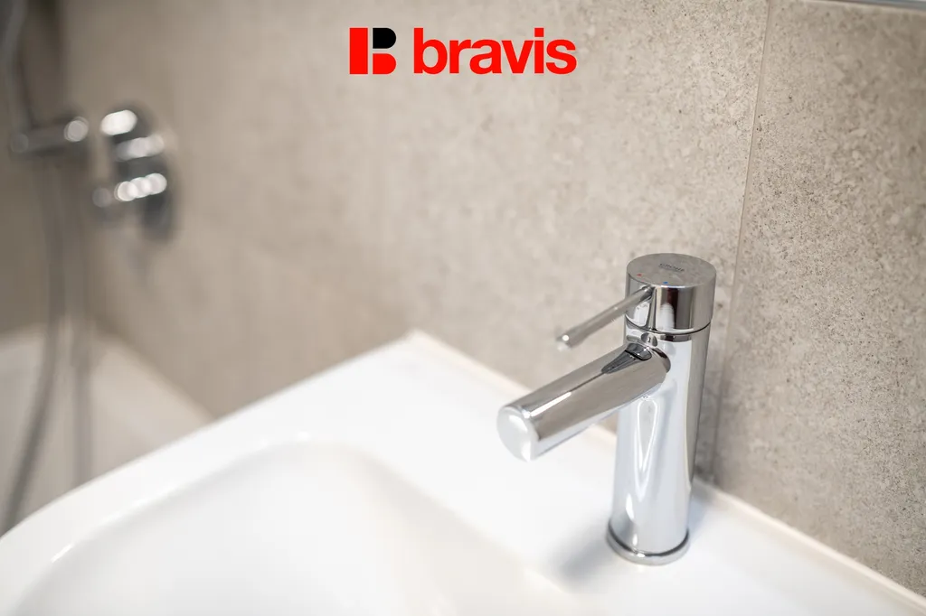 Přípojka na pračku se nachází v koupelně.