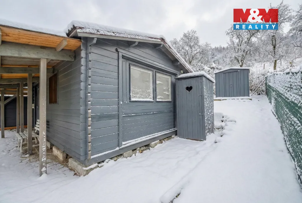 Nabízíme k prodeji útulnou chatu umístěnou do svažitého pozemku (608 m²) s nádherným výhledem do okolní krajiny.