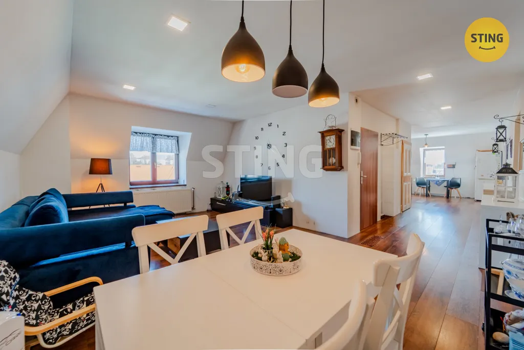 Jedná se o atypický podkrovní byt s osobitou atmosférou a dostatkem prostoru pro větší rodinu nebo pro ty, kteří hledají nadstandardní obytnou plochu.