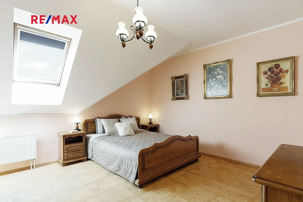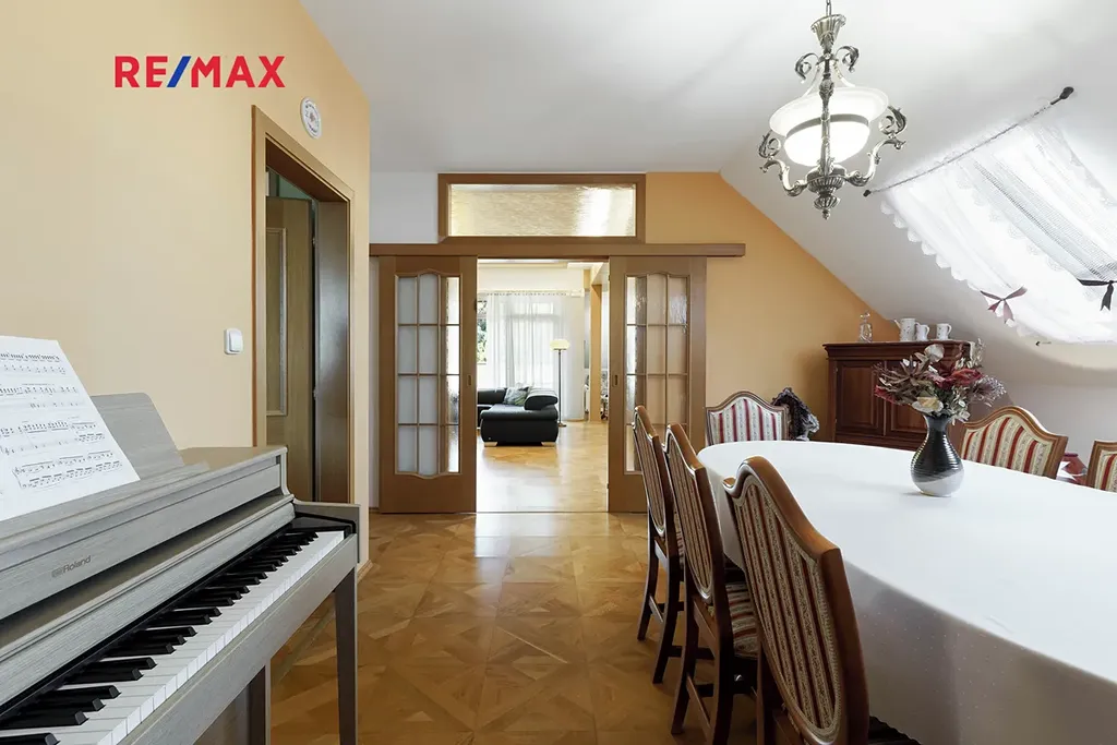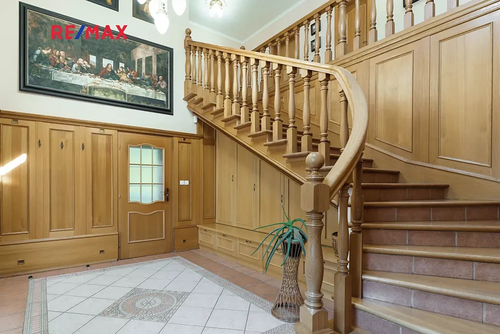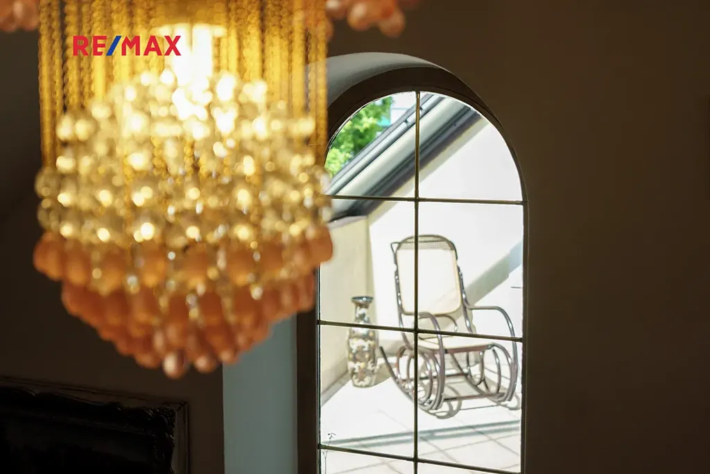 - stylové dřevěné prvky, parkety, lustry a elegantní detaily v celém interiéru