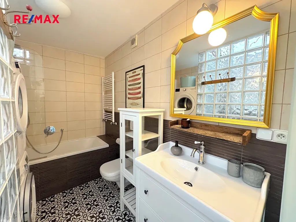Koupelna je vybavena vanou, pračkou a sušičkou, interiér je čistý, funkční a příjemně praktický. Dům je vybaven výtahem, vstupní společné prostory jsou udržované a lokalita patří k nejatraktivnějším v celé Praze– Hořejší nábřeží nabízí krásné procházky u vody, večerní atmosféru i kompletní občanskou vybavenost, a přesto je byt orientovaný do absolutně tichého dvora.
