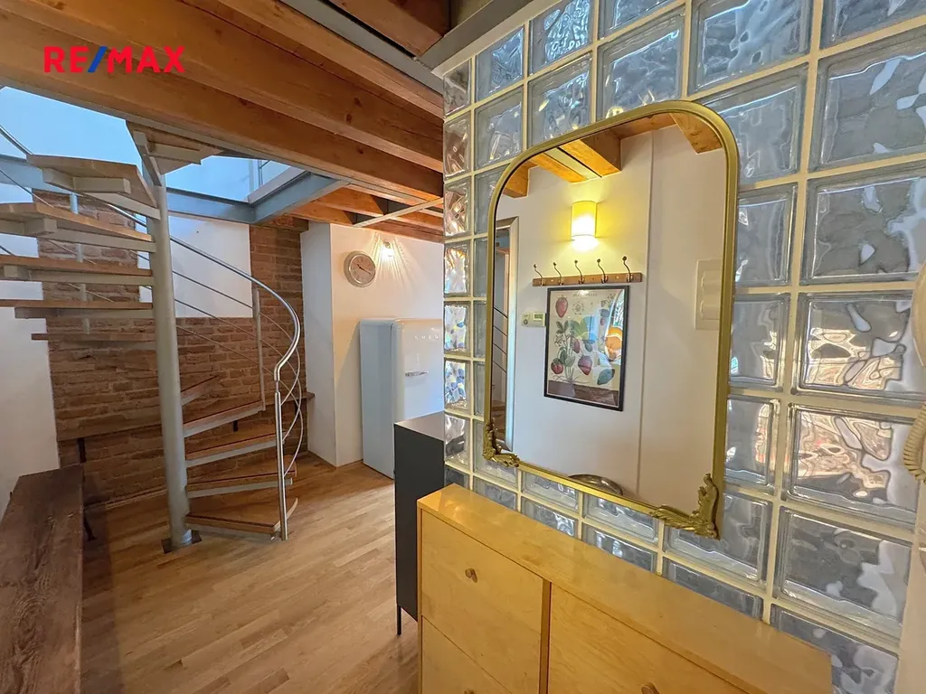Interiér je kompletně vybavený designovým a pečlivě voleným nábytkem, který prostoru dává charakter i útulnost. Dolní úroveň tvoří příjemný obytný prostor s kuchyní, odkud vyniknou dřevěné stropy, cihlové akcenty a i točité schodiště vedoucí do horní části bytu. Kuchyně je plně zařízená, připravená pro každodenní vaření, stejně jako pro večerní sklenku vína.