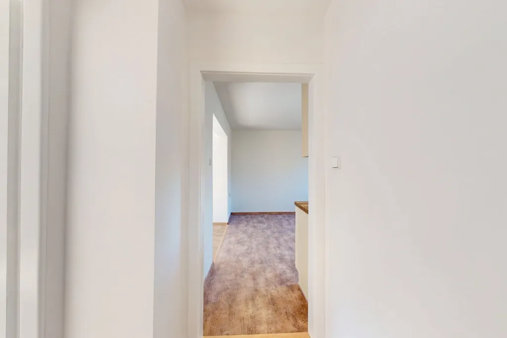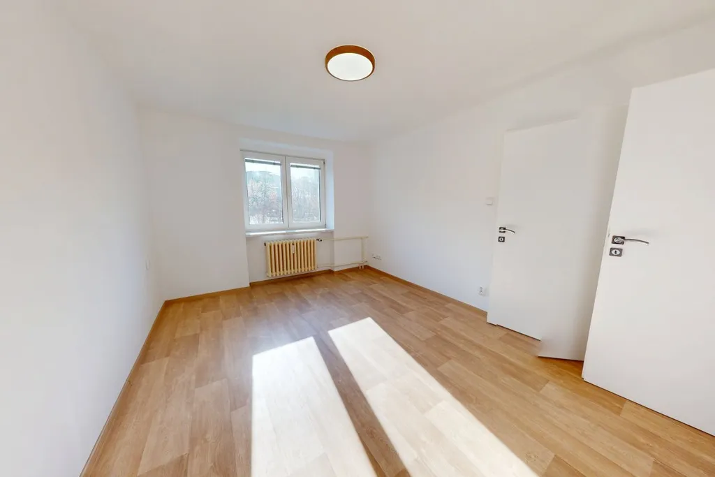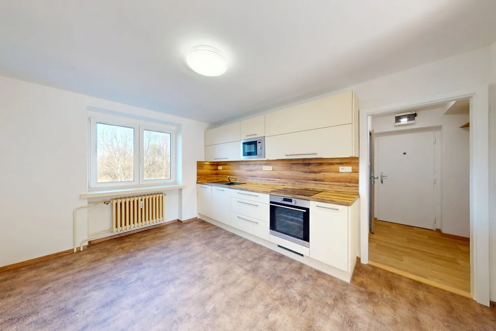 V bytě byla nově položena podlaha a instalována moderní kuchyňská linka s vestavěnými spotřebiči – elektrická trouba, varná deska, myčka a mikrovlnná trouba. Koupelna disponuje vanou, zrcadlem a toaletou. V chodbě je k dispozici věšák na odkládání svršků.