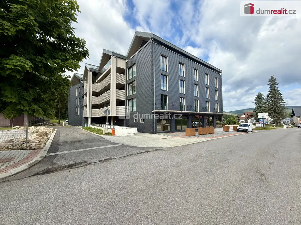 prodej moderního, komerčního prostoru o velikosti 45 m² s vlastní terasou, umístěný v novostavbě projektu Corso, přímo v centru města Harrachov – jednoho z nejvyhledávanějších horských středisek v České republice.