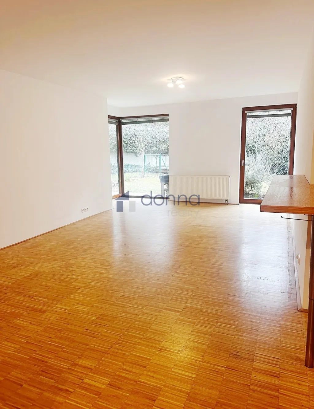 Je bez nábytku, k dispozici kuchyň s novými spotřebiči (pult, varná deska, trouba, lednice, myčka, digestoř) a vestavěné skříně.