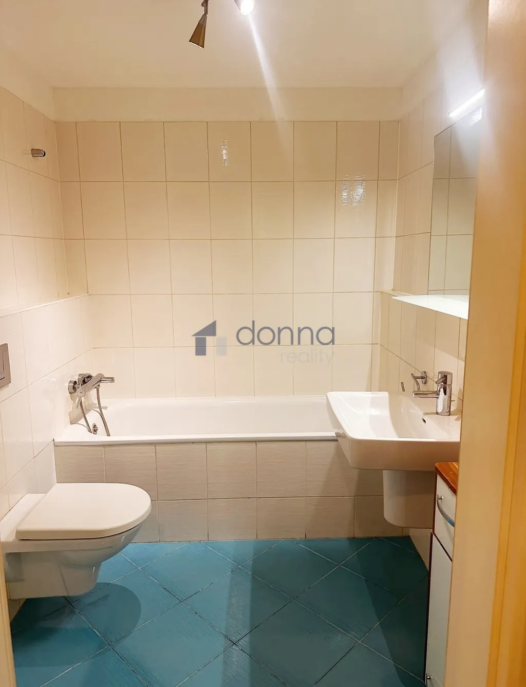 V koupelně je vana a toaleta.