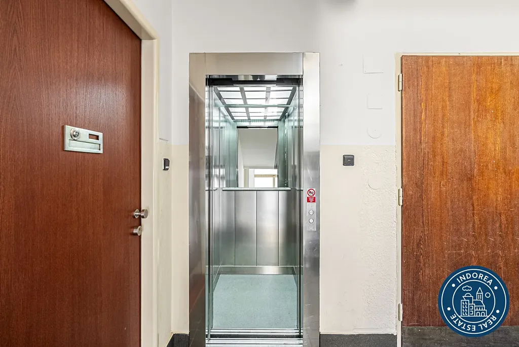 Byt nacházející se ve čtvrtém nadzemním podlaží funkcionalistického domu s výtahem nabízí k užívání prostornou vstupní halu, velkorysý obývací prostor, jídelnu s komorou, hlavní ložnici orientovanou do klidného vnitrobloku, druhou ložnici, koupelnu se sprchovým koutem a toaletou, další samostatnou toaletu, pracovnu. V kuchyni se nachází spíž a je z ní také vstup na praktický balkon.