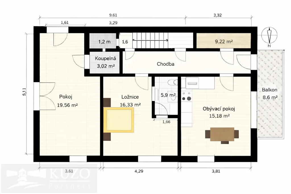 Ložnice: 16,33 m²