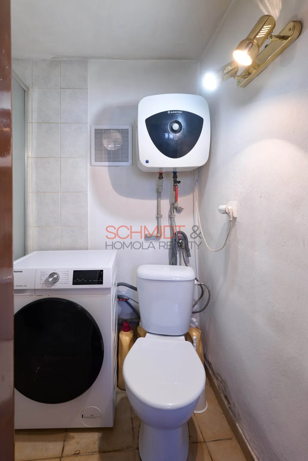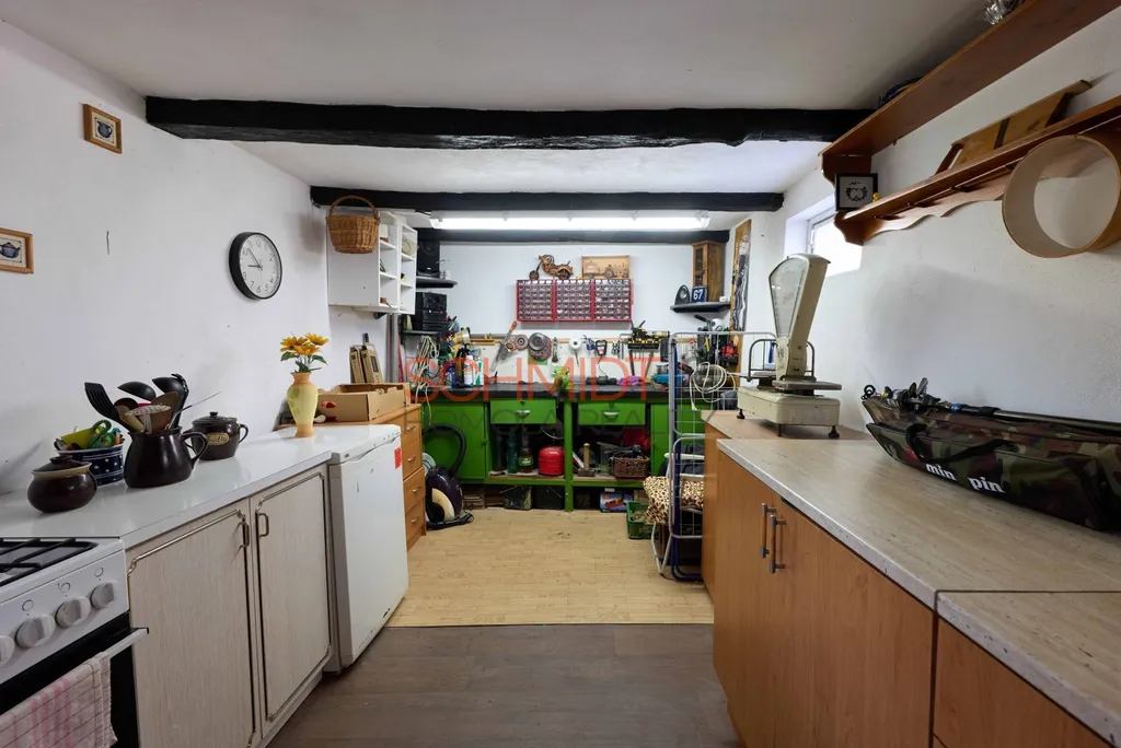 Dům má dvě koupelny. Jednu s vanou, druhou se sprchovým koutem. V každé z koupelen je toaleta. Na obytnou část navazuje kryté posezení, dílna a kryté garážové stání. Další tři auta je možné zaparkovat před domem na vlastním pozemku. Stavba je ze smíšeného zdiva, fasáda byla zhotovena taktéž v rámci rekonstrukce.