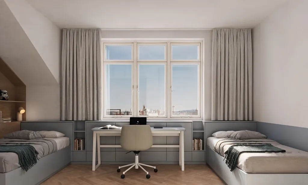 Plánované dokončení podzim 2026. V rámci výstavby nových bytů proběhne celková oprava domu (seznam prací na našem webu).