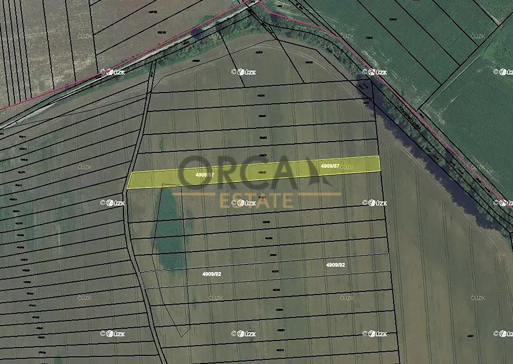 Nabízíme k prodeji pozemek ve výlučném vlastnictví v k.ú. Bzenec, okres Hodonín. Jedná se o parcelu č. 4909/87 o výměře 3846m2 a šířce cca 16 m. Pozemek je zapsán na LV 2294 a dle katastru je evidován jako orná půda. V územním plánu pozemek leží v ploše zemědělské a je propachtován na dobu neurčitou s výpovědní lhůtou 1 rok, roční pachtovné představuje 4.000 Kč/ha + náhrada daně.