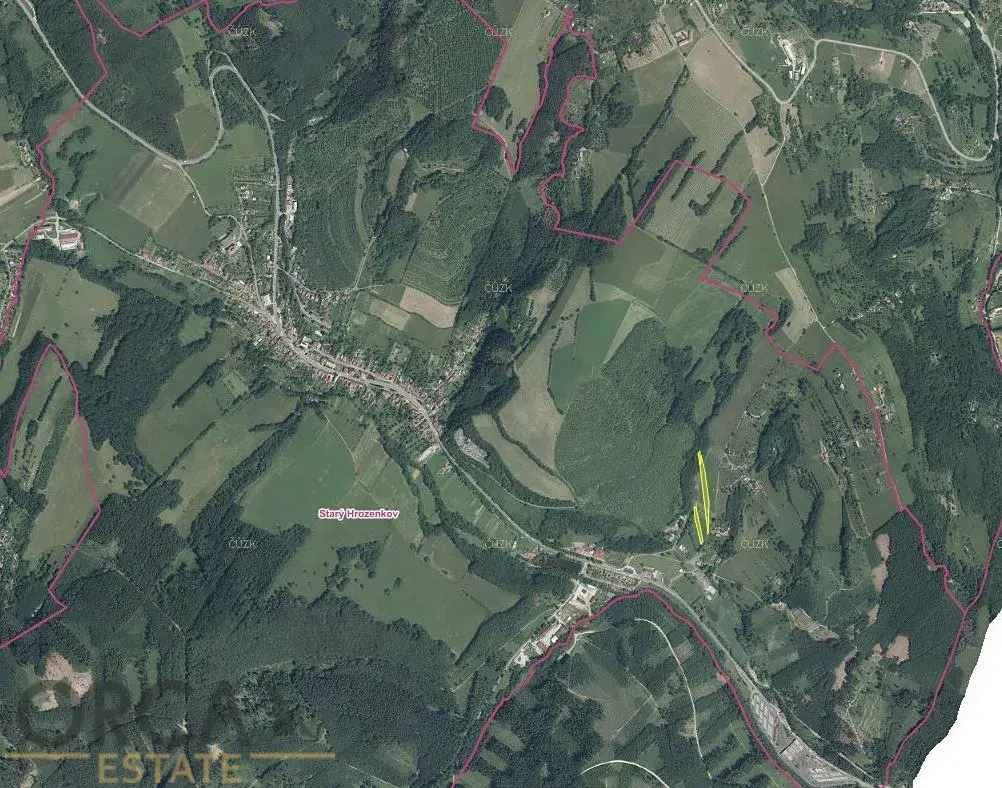Nabízíme tři zajímavé pozemky v podílu 1/4 v k. ú. Starý Hrozenkov, ležícím v okrese Uherské Hradiště. Jedná se o parcely č. 1927, 1935/17a a 2051/18, s celkovou podílovou výměrou 1475 m2, zapsaných na LV 98. Parcela 1927 je široká cca 13 m, parcela 1935/17 měří v nejširší části cca 15 m a parcela 2051/18 má na šířku cca 13 m. Pozemky se nachází v blízkosti sebe na jihovýchodě obce, přičemž podle územního plánu částečně patří do zemědělské oblasti a část parcely č. 1927, zhruba 1/4, spadá do návrhové plochy smíšené obytné.