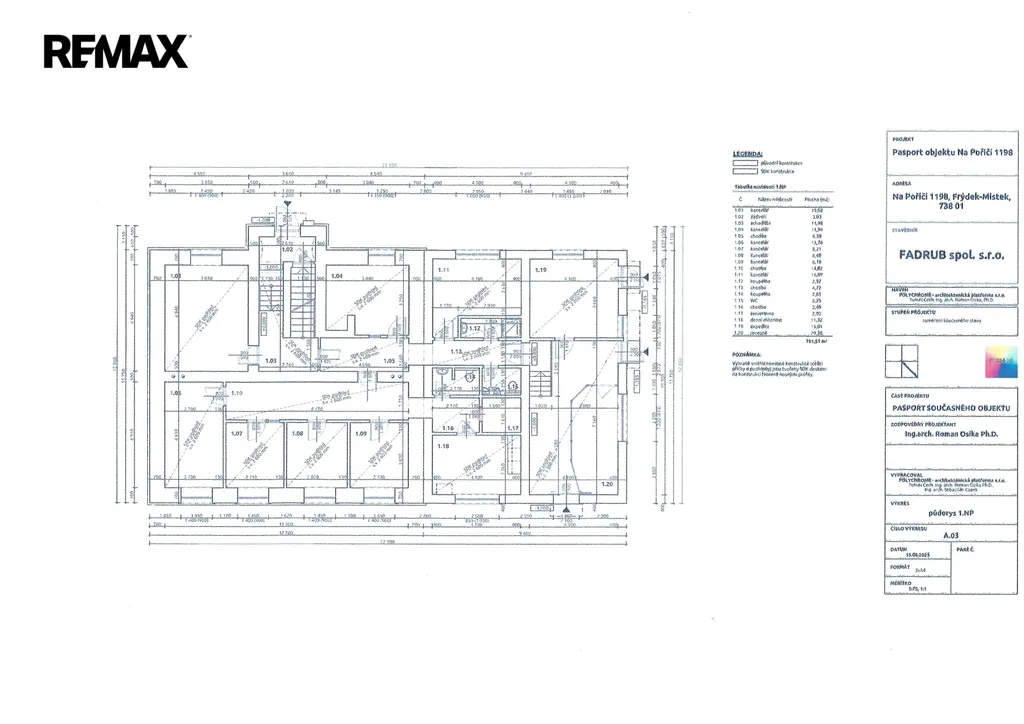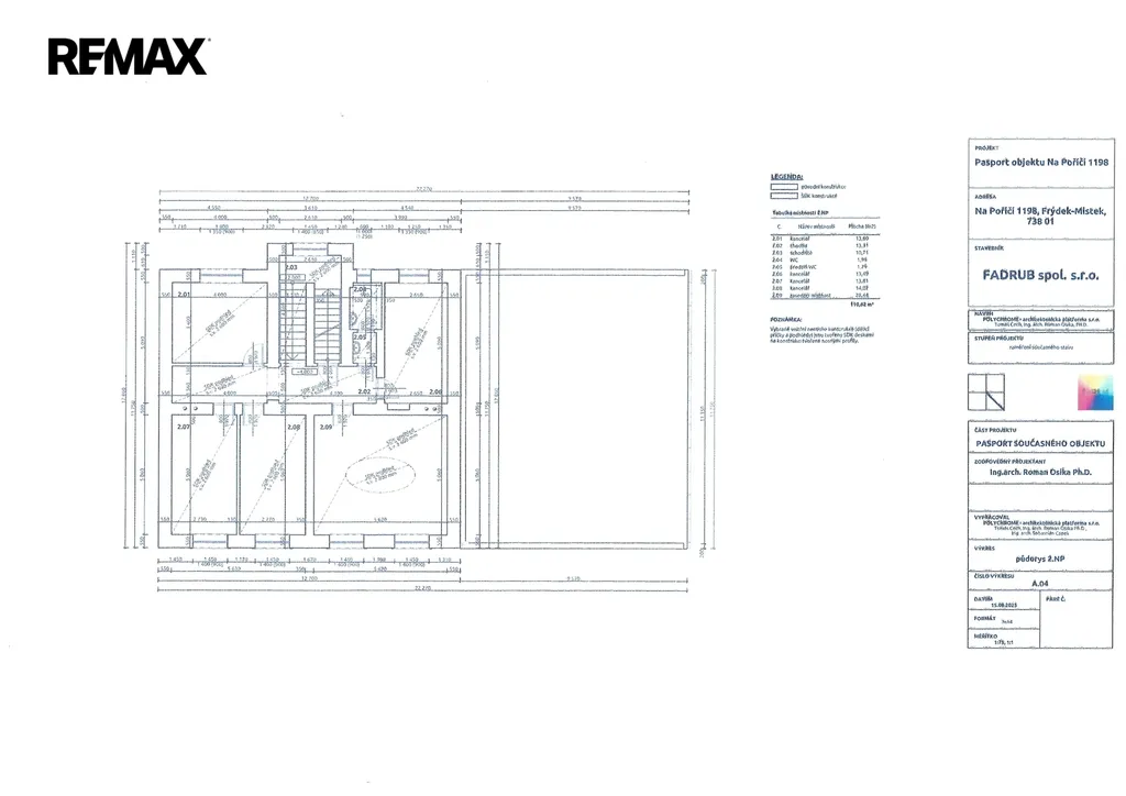 Nabízíme k pronájmu komerční objekt - administrativní budovu s kancelářemi ve strategické lokalitě na adrese Na Poříčí č.p. 1198 ve Frýdku-Místku. Jedná se o zděnou patrovou budovu s dřevěnými prvky (vstupní zádveří) a dřevěnou konstrukcí krovu, vnitřní příčky a podhledy jsou tvořeny SDK deskami na nosné konstrukci. Objekt je částečně podsklepený. V 1. nadzemním podlaží jsou kancelářské prostory, hygienické zázemí (koupelny a WC), serverovna, denní místnost, recepce a prostor pro expedici. Ve 2. NP se nacházejí další kanceláře. Podkroví je momentálně nevyužité, rozdělené do několika menších místností. 1. podzemní podlaží slouží převážně jako skladovací prostor. Dům je v dobrém stavebně‑technickém stavu.