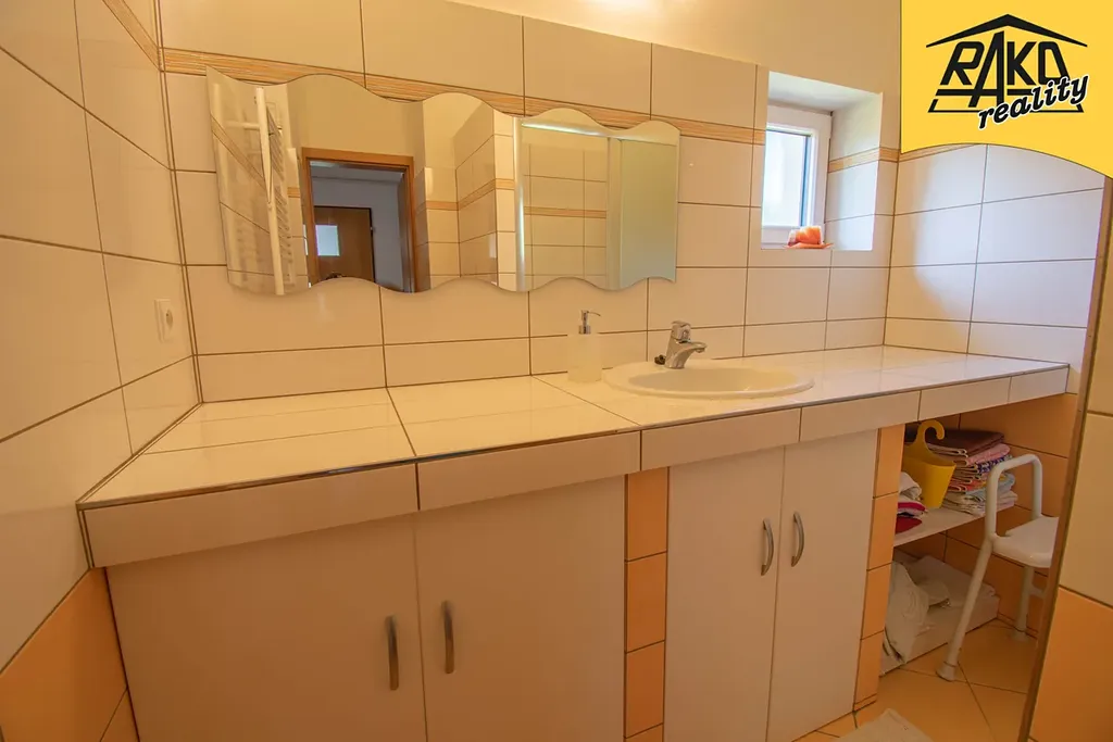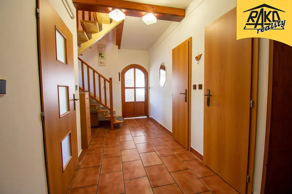 Příslušenství: zpevněné plochy, vedlejší stavba s garáží a dílnou a letní místností + venkovní posezení, dřevěný přístřešek na dřevo, skleník, venkovní sprcha, venkovní bazén. Parkování přímo na pozemku.