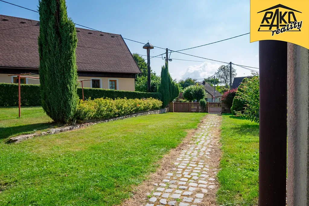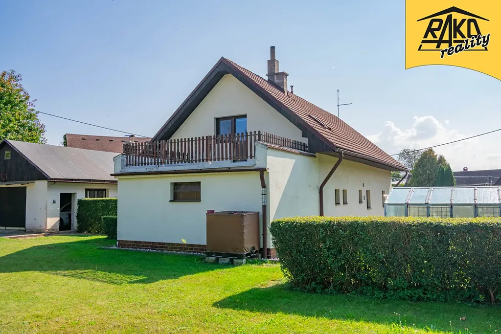 Dům s aktuální dispozicí 5+kk byl původně klasickou dřevěnicí, která byla odstraněna a v roce 1997 byla zkolaudována nová stavba. Rodinný dům s vedlejší stavbou obklopuje zahrada o výměře cca 1100 m2. Celkově oplocený pozemek, který je rovinatý s vlastním vjezdem má výměru 1750 m2. Zahrada je krásně udržovaná a opečovávaná s láskou. Na pozemku je umístěn dřevěný přístřešek na uskladnění dřeva, venkovní bazén (zabudovaný), skleník a venkovní sprcha. Vedlejší stavba, na kterou navazuje zastřešené venkovní posezení (21 m2) obsahuje velkou garáž s dílnou o výměře 40 m2, dále letní místnost s kamny (18,5 m2), kde je možné posedět v chladnějších dnech. Nad garáží a letní místností je prostorná půda na uskladnění například sena. Jsou zde též různé úložné prostory na uskladnění například zahradního nářadí.