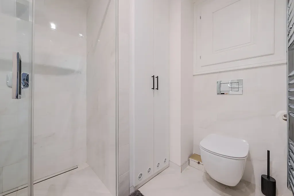 Koupelna se sprchovým koutem a WC.
