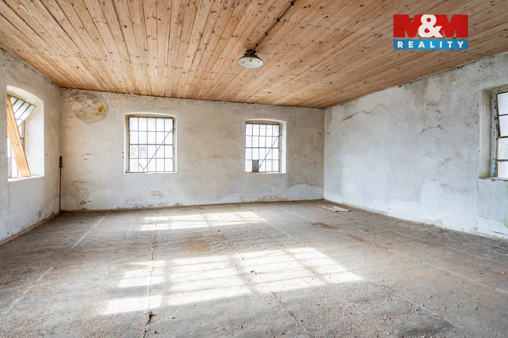 Možnosti využití: Objekt je vhodný ke skladování, jako dílna či pro jiné podnikatelské účely. Nabízí také potenciál k přestavbě na rodinný nebo bytový dům.