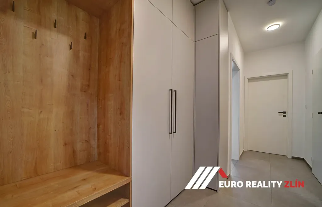 Byt o velikosti 61,20m2 disponuje moderní kuchyňskou linkou s vestavěnými spotřebiči (myčka, trouba, sklokeramická varná deska, digestoř), lednicí s mrazákem, prostornou koupelnou se sprchovým koutem a WC. Vysokorychlostní internet rozveden v bytě. Ve vstupní chodbě jsou na míru skříně a zabudovaná praktická odkládací stěna, vše v moderním a příjemném designu navrženo architektem, k dispozici je domácí videotelefon a klimatizace.