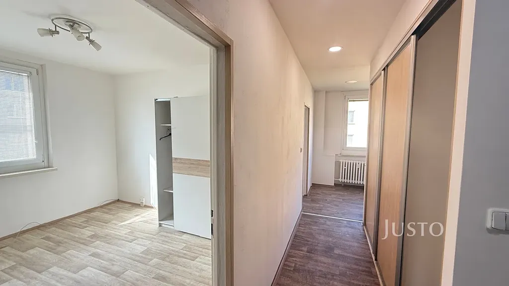Interiér bytu prošel částečnou rekonstrukcí. Kuchyň je vybavena moderní linkou s vestavěnou troubou, varnou deskou a myčkou, na podlaze je praktická krytina s dřevěným dekorem. Koupelna je nově zrekonstruovaná s vanou a obklady v příjemných přírodních tónech. Chodba nabízí dostatek úložných prostor díky vestavěné skříni. Byt působí světlým a vzdušným dojmem, všechny místnosti mají vlastní okno.