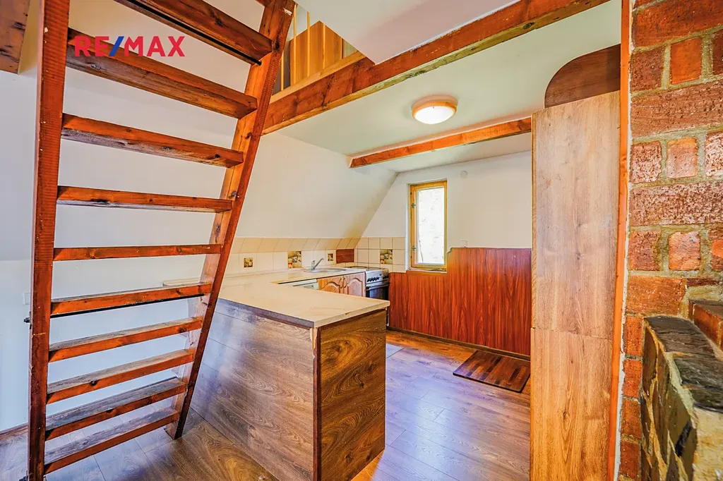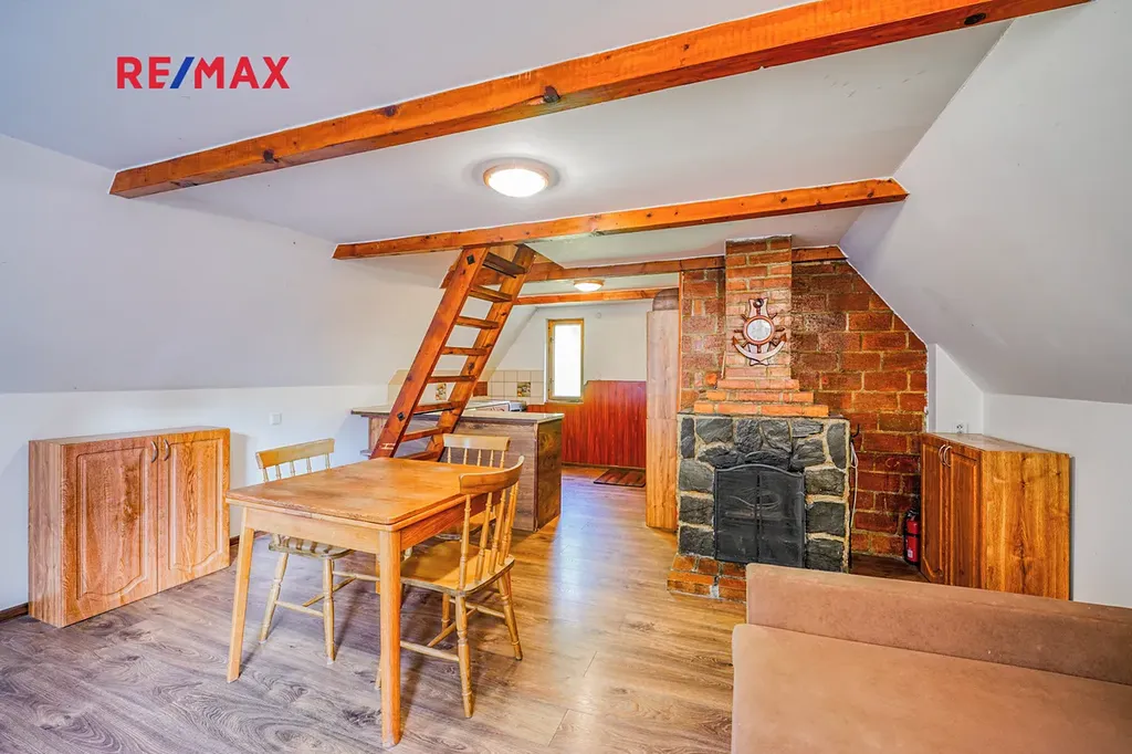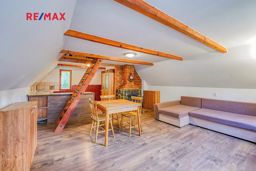 Chata je rozdělena do tří podlaží, v 1. podlaží se nachází vstupní chodba a místnost kterou lze využít například jako dětský pokoj. Ve 2. podlaží se nachází obývací pokoj s krbem, kuchyní a koupelnou se sociálním zázemím. Ve 3. podlaží nalezneme další pokoj který lze využít například jako dětský pokoj, ložnici a nebo pracovnu. Dále je na zahradě k dispozici polozapuštěný bazén a domek pro zahradní náčiní. Díky vysokým vzrostlým stromům po obvodu pozemku nabízí zahrada dostatek klidu a soukromí. Chata prošla v roce 2016 kompletní rekonstrukcí včetně zateplení, je vybavena plastovými okny s dvojskly, elektroinstalací kompletně v mědi, plovoucími podlahy a střechou z plechové taškové krytiny. Vytápění je zde řešeno pomocí krbu a ohřev vody pomocí elektro bojleru.