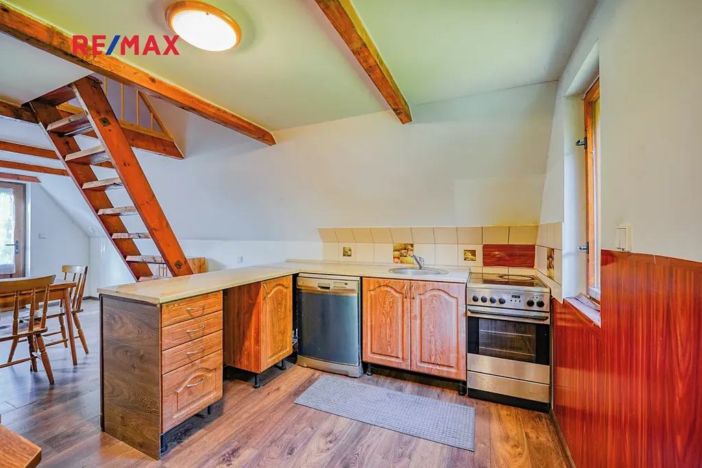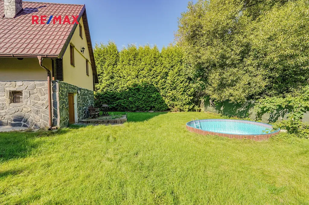 Chalupa je rozdělena do tří podlaží, v 1. podlaží se nachází vstupní chodba a místnost kterou lze využít například jako dětský pokoj. Ve 2. podlaží se nachází obývací pokoj s krbem, kuchyní a koupelnou se sociálním zázemím. Ve 3. podlaží nalezneme další pokoj který lze využít například jako dětský pokoj, ložnici a nebo pracovnu. Dále je na zahradě k dispozici polozapuštěný bazén a domek pro zahradní náčiní. Díky vysokým vzrostlým stromům po obvodu pozemku nabízí zahrada dostatek klidu a soukromí. Chalupa prošla v roce 2016 kompletní rekonstrukcí včetně zateplení, je vybavena plastovými okny s dvojskly, elektroinstalací kompletně v mědi, plovoucími podlahy a střechou z plechové taškové krytiny. Vytápění je zde řešeno pomocí krbu a ohřev vody pomocí elektro bojleru.