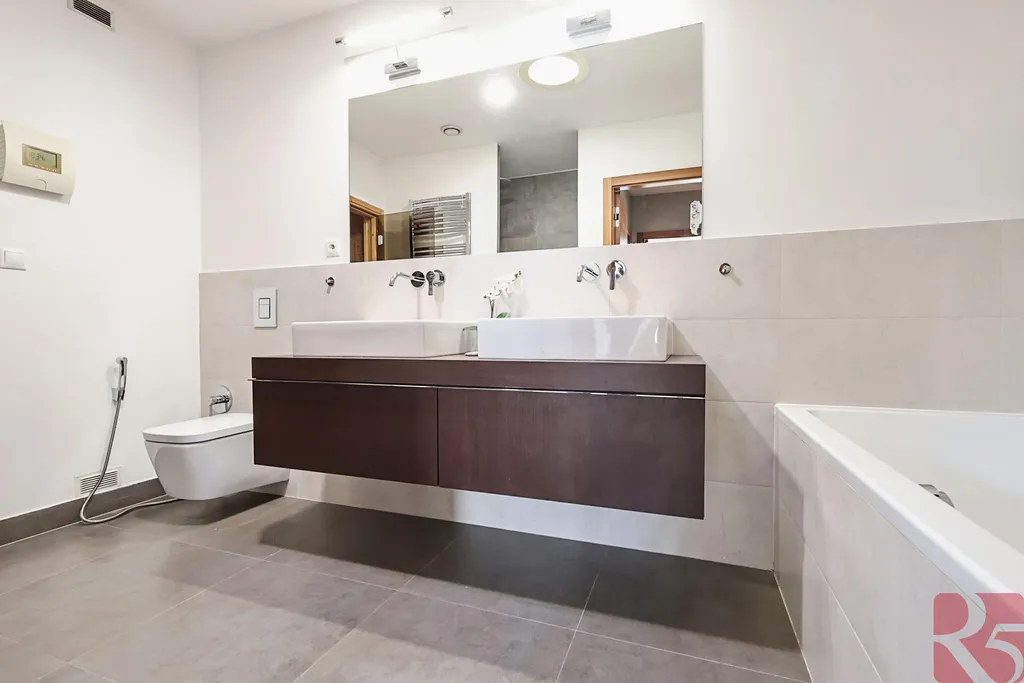 Prodej luxusního bytu 4kk 118m2 + terasa, zahrada, sauna, dvě garážová stání, sklep, komora, Praha - Uhříněves, ul. V Bytovkách, ideální místo pro rodinné bydlení.