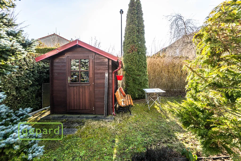 Dále půdní prostor s úložným prostorem a garáž zařízená a využívaná primárně jako sklad a dílna.