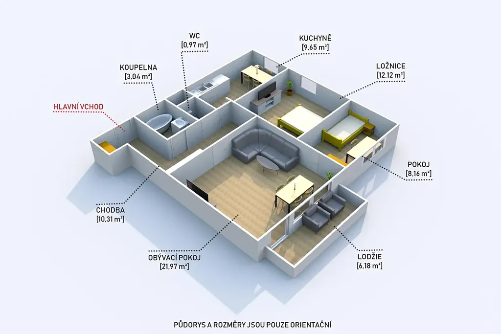 Uvedené výměry a půdorys jsou orientační.