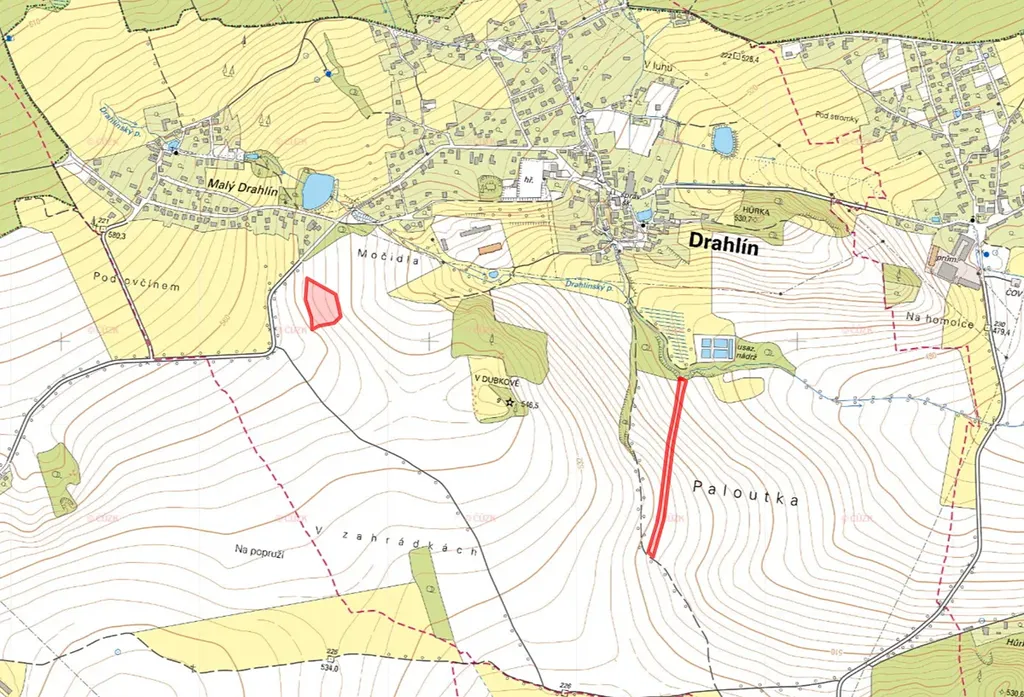 Ve výlučném vlastnictví nabízíme k prodeji dva zemědělské pozemky v katastrálním území Drahlín, okres Příbram. Pozemky jsou zapsány na listu vlastnictví č. 39 a přístup k nim je zajištěn přímo z obecní komunikace.