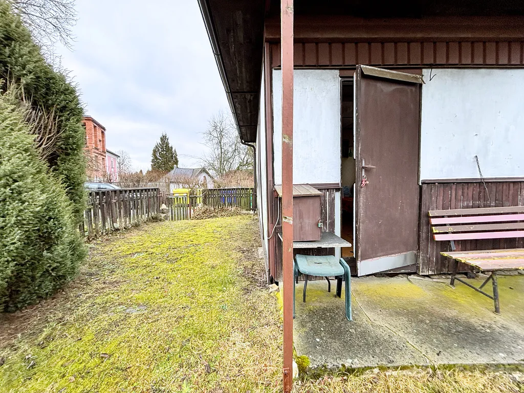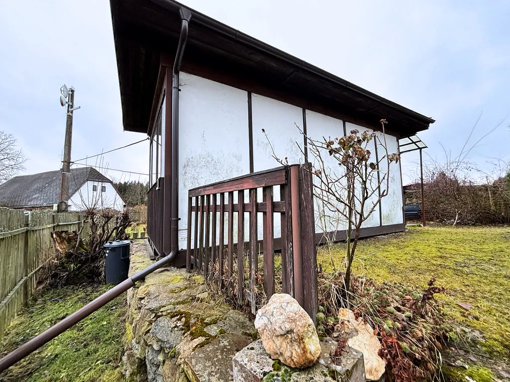 Na pozemku stojí původní montovaná chata (č. ev. 31), vhodná k demolici.