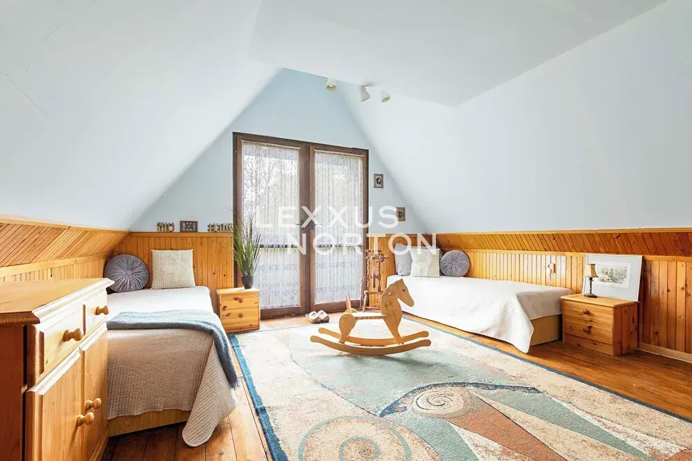 2. patro: prostorná ložnice a odpočinkový prostor nad schodištěm – ideální pro čtení, relax nebo jako prostor pro děti.