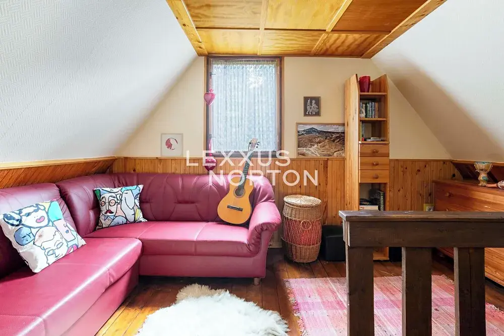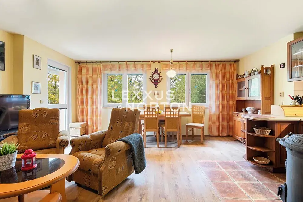 Na pozemku o velikosti 290 m² stojí chata s užitnou plochou cca 100 m², garáž (30 m²) využívaná jako dílna a sklad, a terasa nad garáží o stejné velikosti – ideální místo pro letní stolování nebo klidné ráno s výhledem do zeleně.