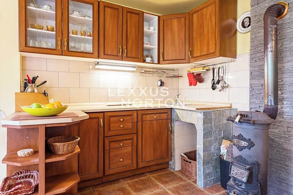 Přízemí / suterén: útulná obytná místnost s krbem, kuchyňským koutem a technickou místností – ideální jako vinný sklípek, klubovna nebo lze využít jako prostor pro hosty.