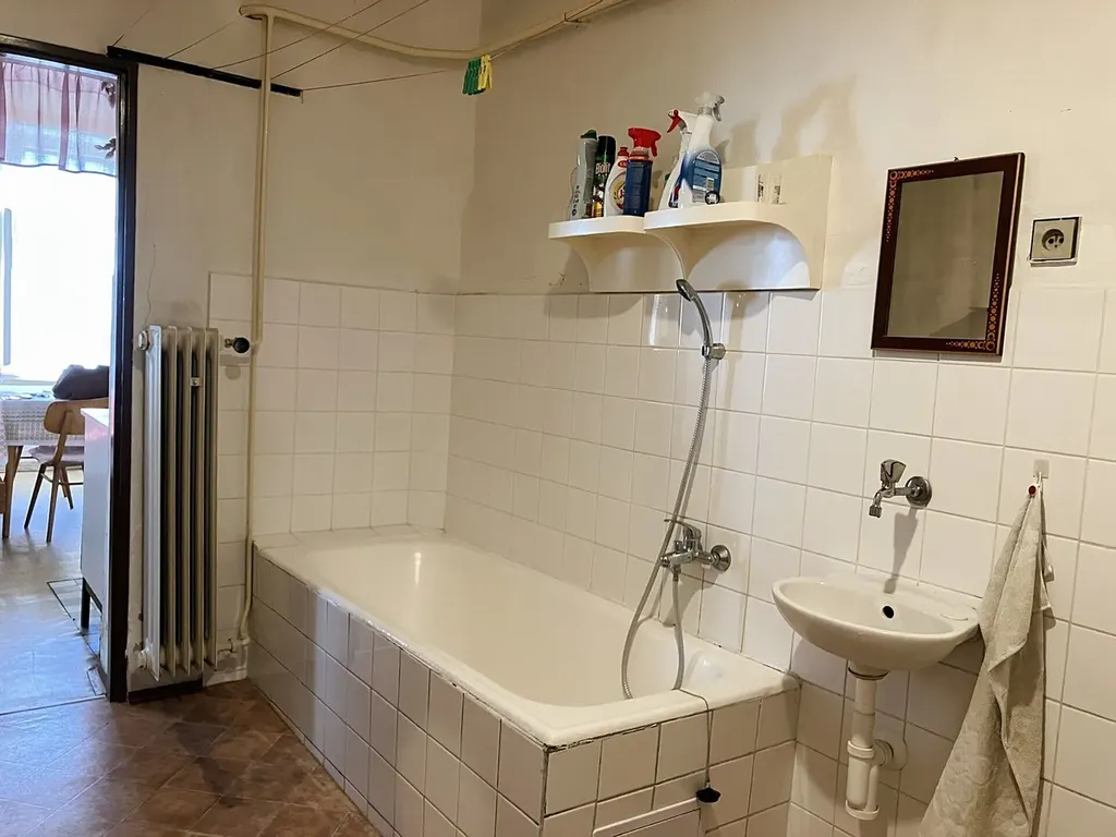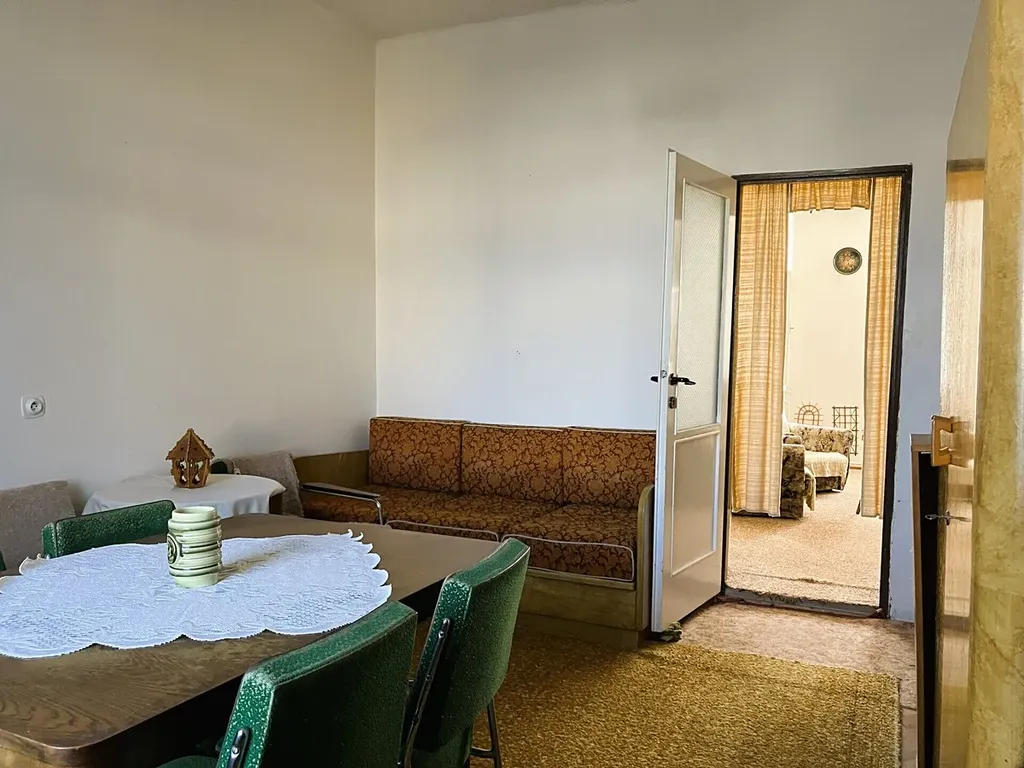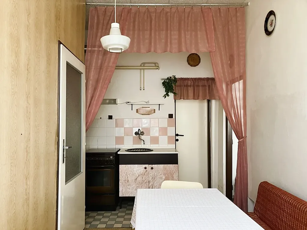 Dům má pouze tři bytové jednotky, což zaručuje klidné bydlení bez velkého provozu. Byt o podlahové ploše 59,08 m² nabízí praktické uspořádání: vstupní chodbu, kuchyni, dva obytné pokoje, koupelnu s vanou a umyvadlem, samostatné WC a komoru. Vytápění a ohřev vody zajišťuje vlastní plynový kotel.