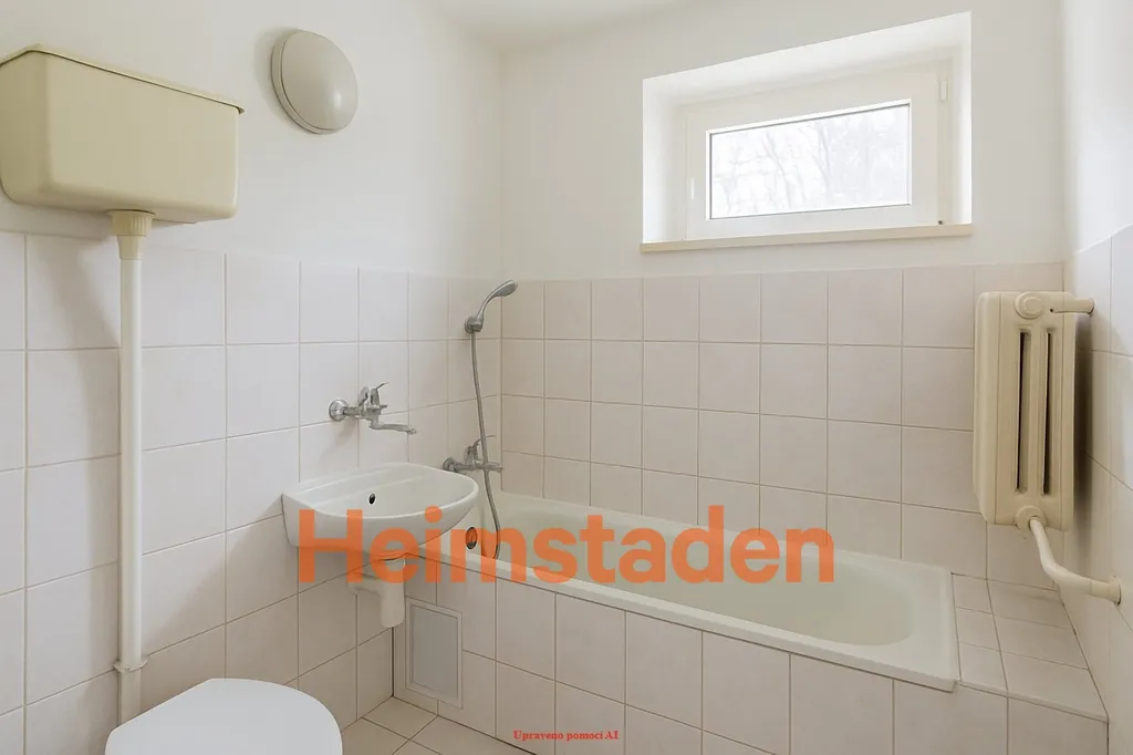 Koupelna s vanou a WC prosvětlená oknem.