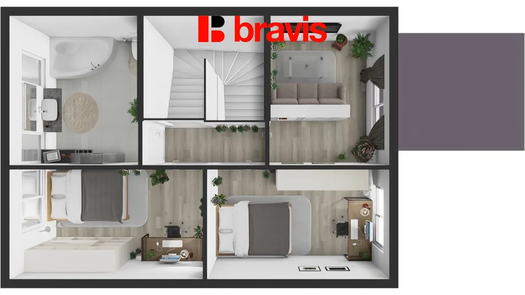 - Okna s trojskly a vlastní tepelné čerpadlo zajišťují nejen komfort, ale i energetickou efektivitu s nízkými provozními náklady díky třídě A,