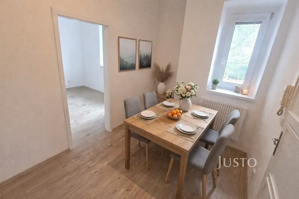 Byt se nachází ve sníženém přízemí menšího domu se čtyřmi bytovými jednotkami, což zajišťuje klidné a komorní bydlení.