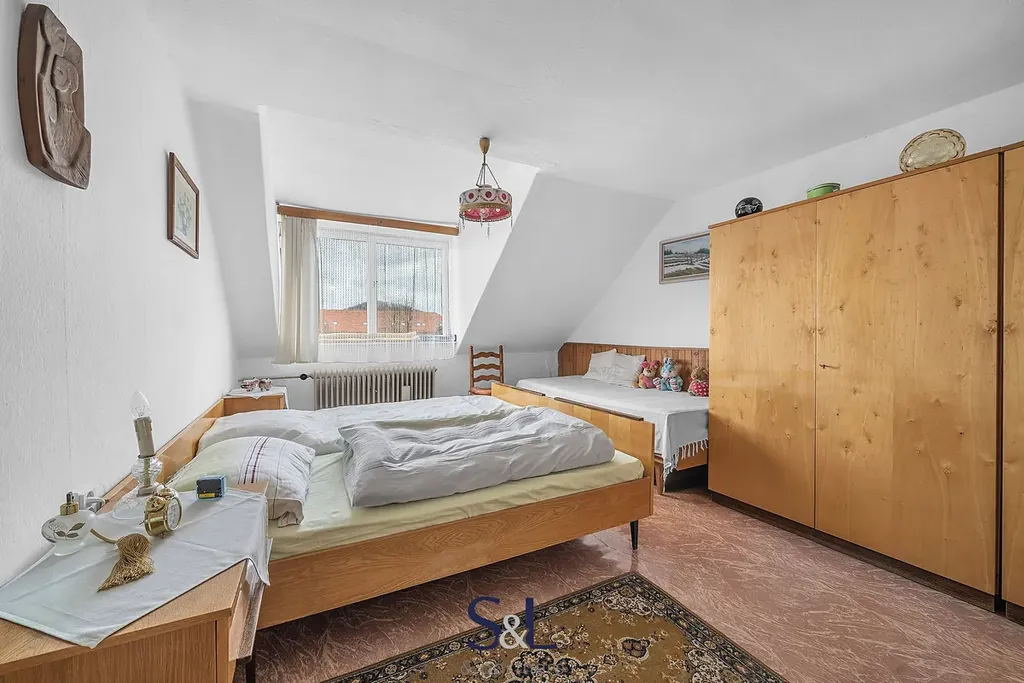 Podkroví (cca 20 m² + půdní prostor) – dva pokoje, možnost vybudování třetí bytové jednotky (aktuálně jsou zkolaudovány dvě bytové jednotky)