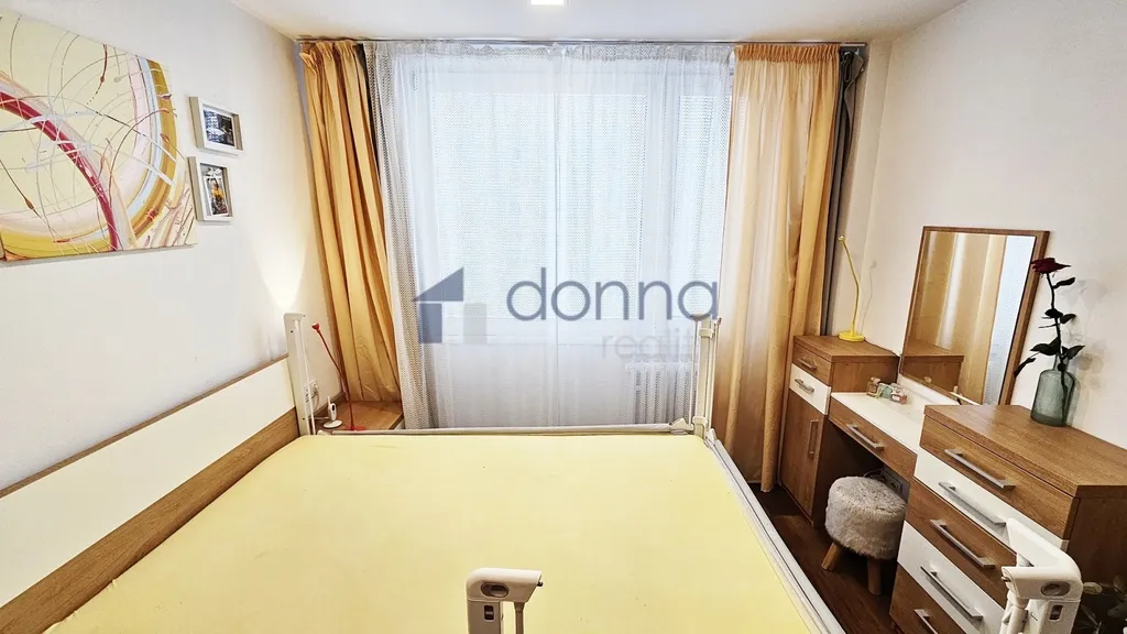 Dvě ložnice orientované na sever: hlavní s postelí a úložnými prostory na míru, druhá jako dětský pokoj, pokoj pro hosty nebo pracovna.