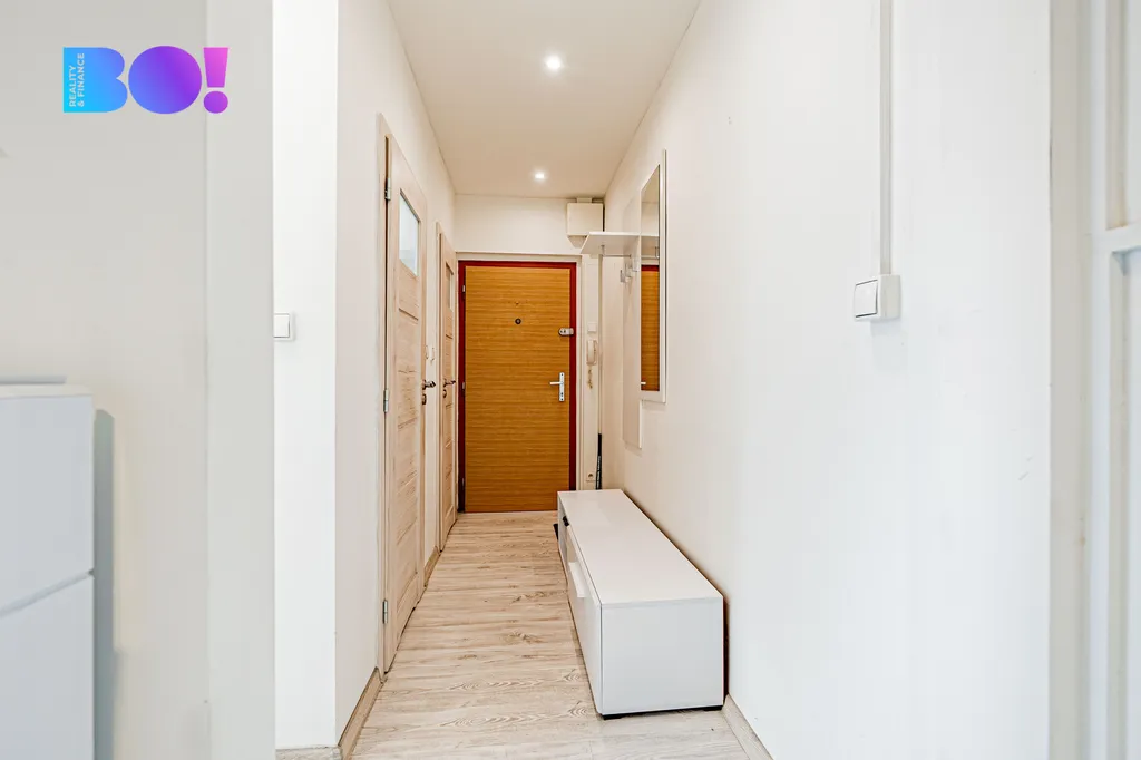 Velkou výhodou bytu je prostorná chodba , kdy na konci chodby je dostatek prostoru pro úložný prostor.