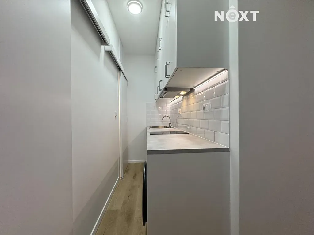 Po vstupu do bytu vás přivítá chodba s kuchyňskou linkou, která je vybavena lednicí i pračkou. Z chodby je vstup do koupelny a na samostatné WC. Díky tomuto řešení zůstává hlavní pokoj plnohodnotným obytným prostorem, který si můžete zařídit podle vlastních představ. Velké okno zajišťuje dostatek denního světla a příjemnou atmosféru.