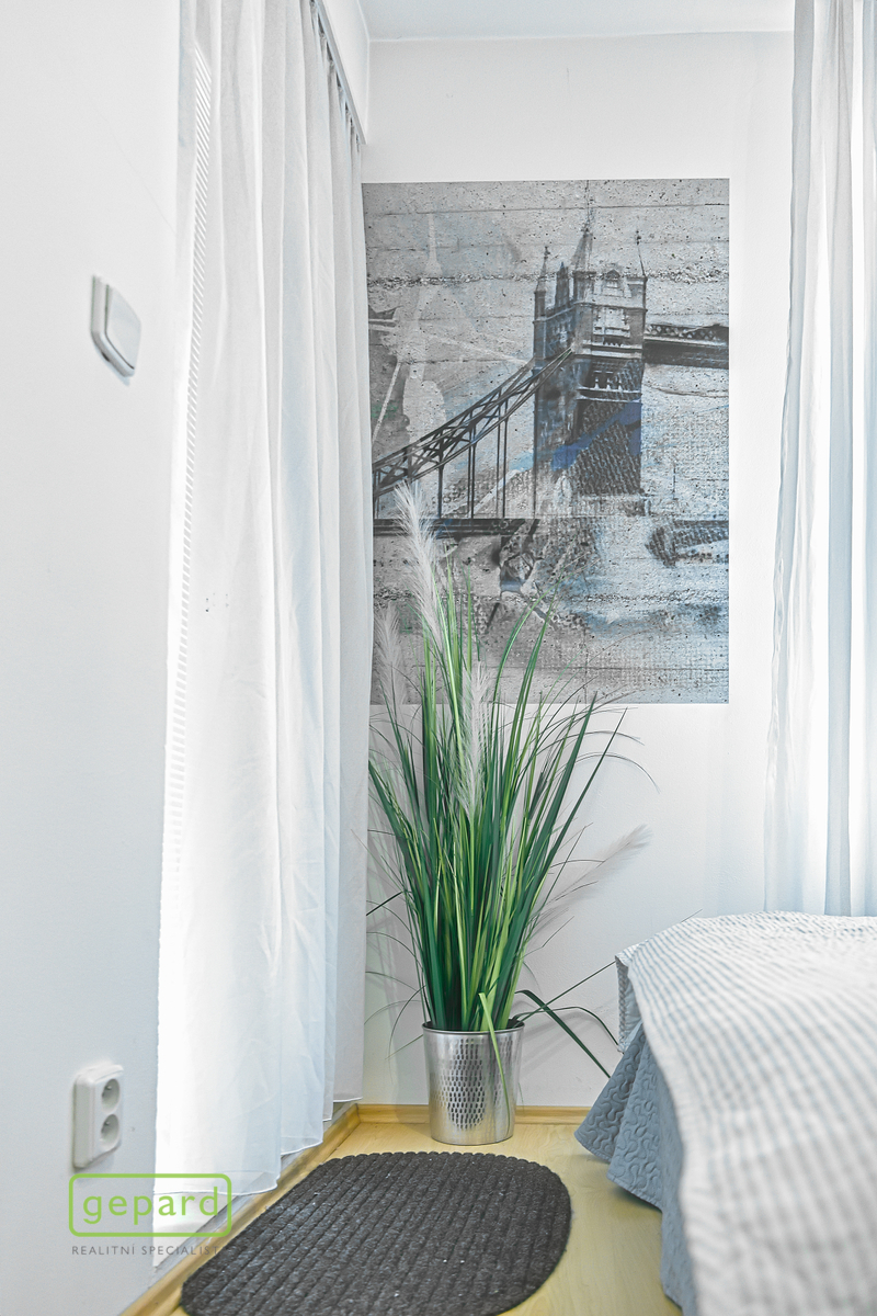 V bytě jsou nové plovoucí podlahy, dveře, designová kuchyňská linka se spotřebiči, plastová okna, koupelna se sprchovým koutem.
