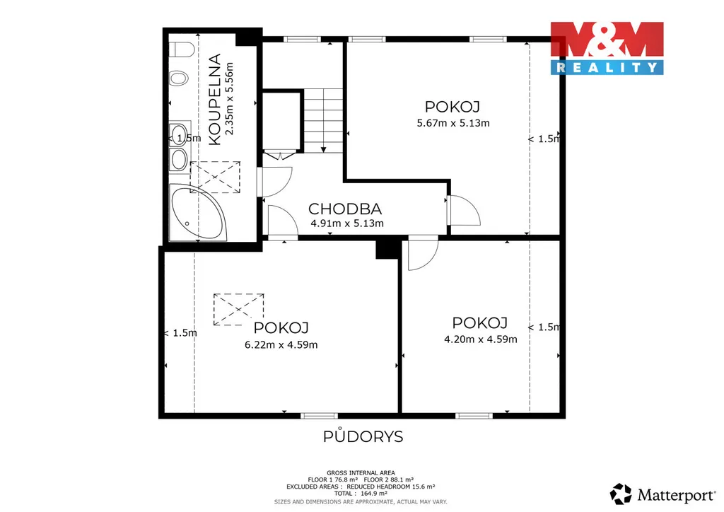 Ve druhém poschodí se nachází klidová zóna, ale je možno rozšířit podkroví a vybudovat vícegenerační bydlení.