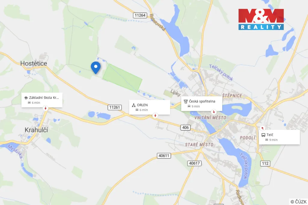 S dopravní dostupností pouhých 5 minut jízdy autem do centra Telče tak dostanete ideální kombinaci přírody a občanské vybavenosti
