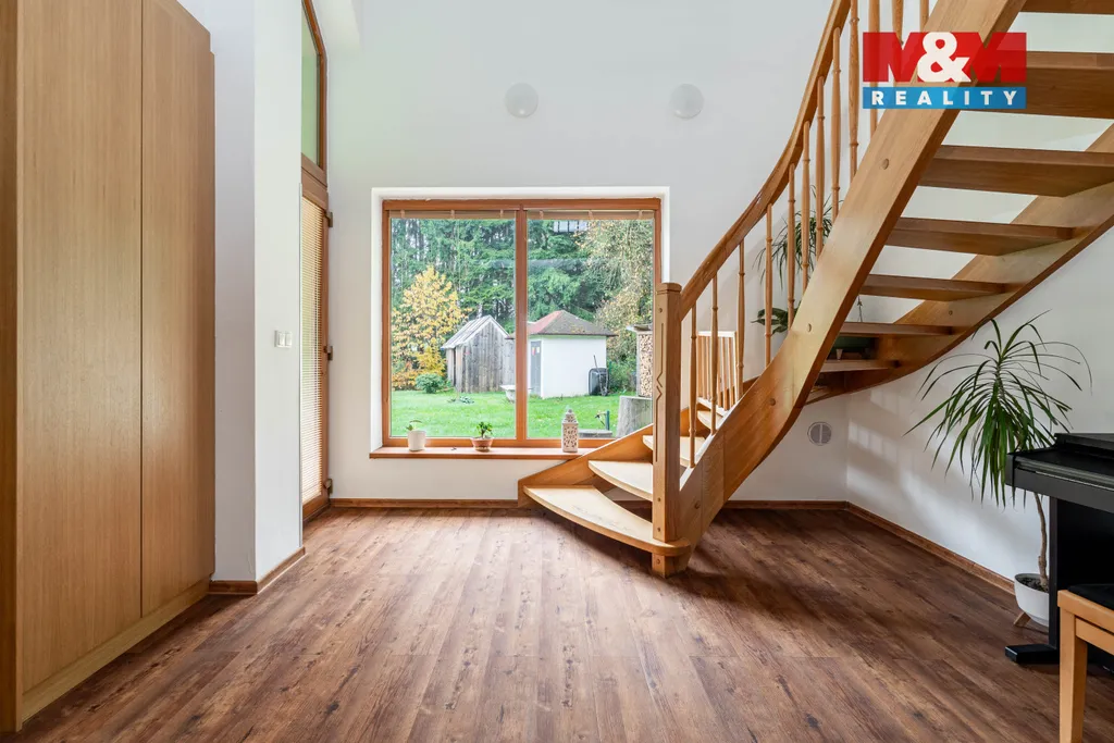 Nemovitost z roku 2009 prošla nedávnou rekonstrukcí, při které došlo k úpravě interiérů zahrnující lehké dispoziční úpravy, nové podlahové krytiny nebo například novou kuchyň i obě koupelny. Standardem je zde podlahové topení s elektrokotlem, doplněno o kanadská krbová kamna v obývacím pokoji. Na pozemku naleznete vlastní studnu napojenou na okruh v domě. Jako další zdroj vody je využíváno ale i připojení na vodovod. Dispozice domu je řešena jako 5+kk. Tři samostatné ložnice se nacházejí v horním patře. V přízemí je dále k dispozici obývací pokoj napojený na halu a další pokoj, hodící se jako pracovna.