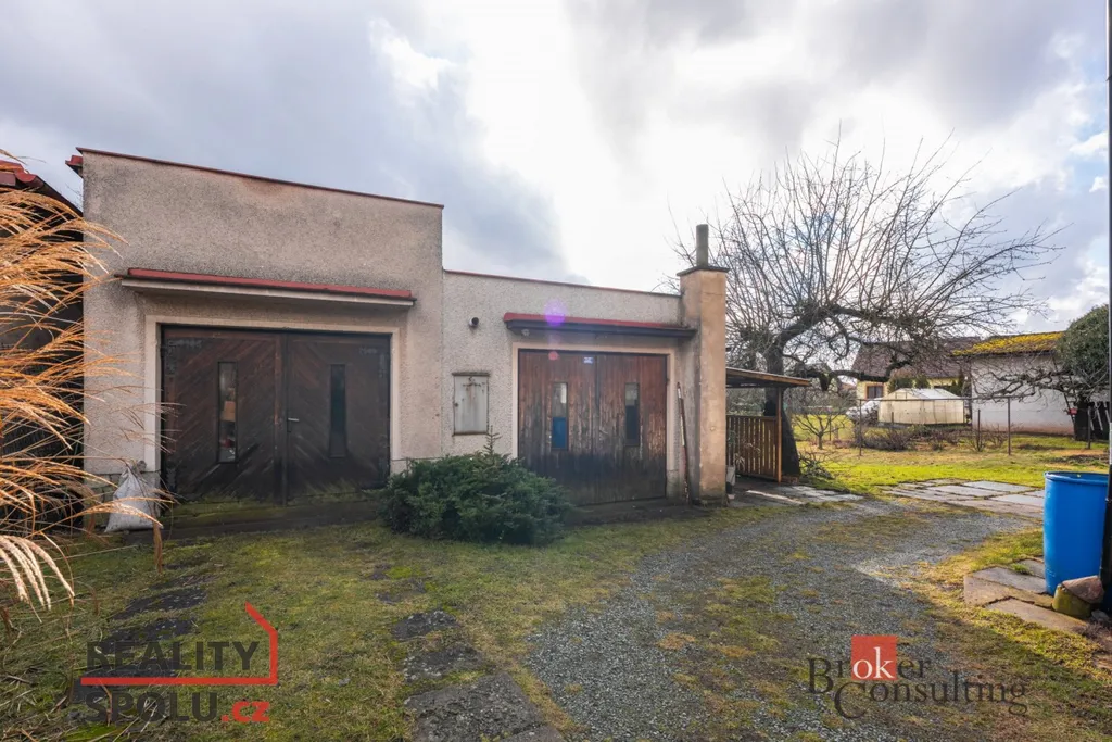 Součástí nemovitosti jsou také dvě garáže s přilehlou dílnou, která nabízí praktické zázemí pro práci nebo uložení nářadí a zahradní techniky.