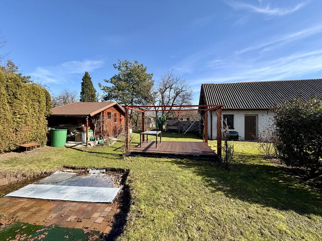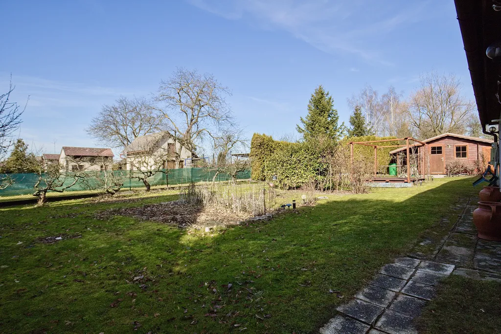K domu náleží udržovaný pozemek o celkové výměře 930 m², z toho 757 m² tvoří zahrada s altánkem a zahradním domkem – ideální místo pro rodinné posezení či relaxaci v soukromí. Součástí je také další samostatně stojící garáž s dílnou a dostatek úložného prostoru.