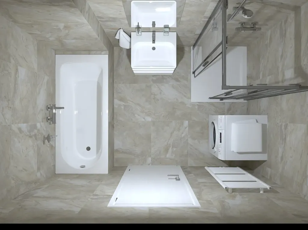 - sanitární technika, sprchový kout, včetně sprchového setu, umyvadlo včetně baterie, vana, závěsné WC, zrcadlo, obklady - mramor