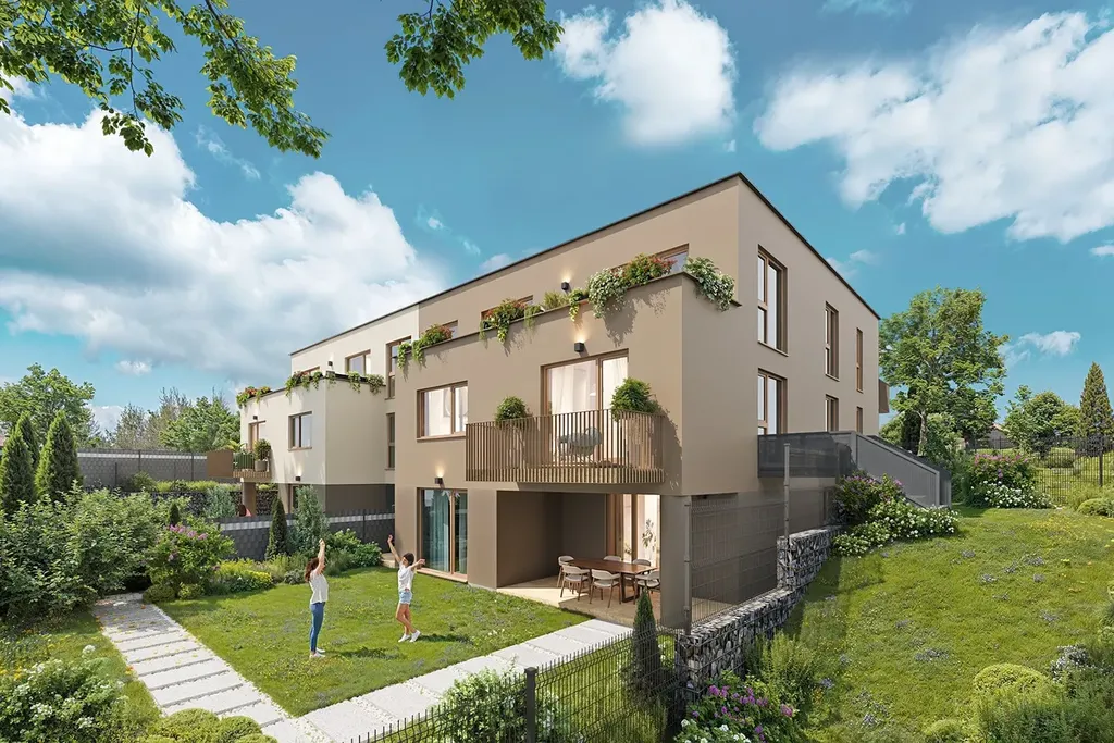 Nabízíme k prodeji byt 3+KK s terasou 10,5m2, zahradou 101,3m2, sklepem 7,7m2 a 1 parkovacím stáním.