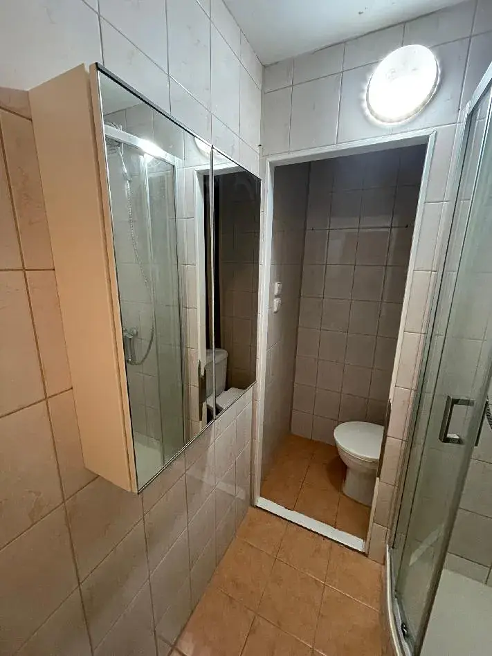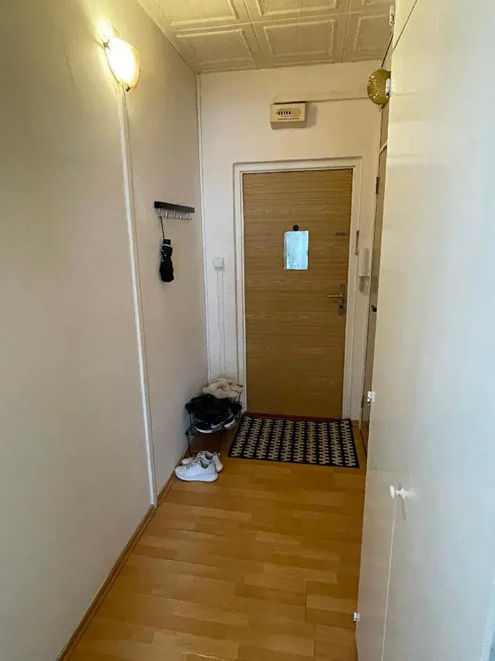 Panelový dům, ve kterém se byt nachází, je vybaven výtahem a k bytu přísluší také komora (sklep) pro další úložné možnosti, a to přímo na patře bytu. Interiér bytu je prostorný a světlý, s oknem do klidné části. Byt je vybaven novější kuchyňskou linkou, spotřebiče a nábytek jsou ve vlastnictví současného nájemce. Je zde i možnost domluvit s nájemcem odkup vybavení. Koupelna je vybavena sprchovým koutem, umyvadlem, WC. Bytové jádro je umakartové, ale v dobrém stavu. V chodbě se nachází vestavěná skříň s připraveným připojením na pračku.